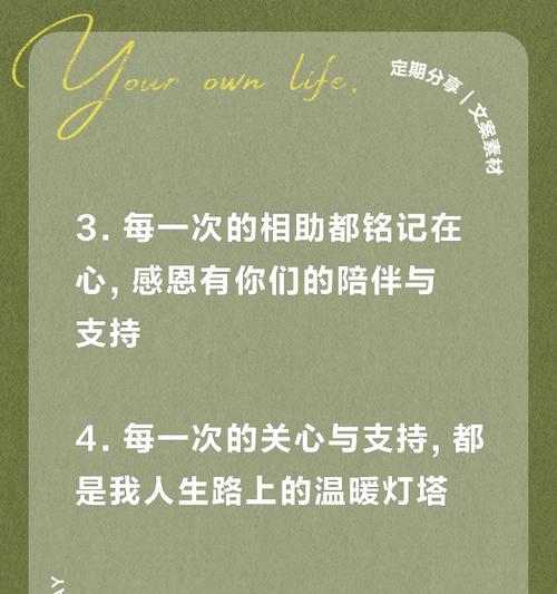 每个人都会遇到需要帮助的时刻,而这时候来自朋友、家人、甚至陌生人的帮助就显得尤为重要。在这样的过程中,我们常常会体会到帮助的温暖与感恩的心情。本文将从感恩帮助你的人的角度出发,通过一些唯美的短句来探讨人与人之间的情感联系。